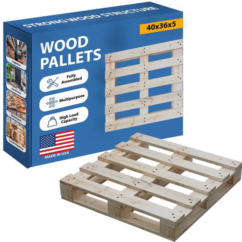• Standard 40×36×5″ Dimensions: Wood Pallets Fits most racking systems and shipping requirements—ideal for commercial, retail, manufacturing, and storage applications like warehouses, shipping facilities, supermarket, closets, storage rooms, Paver Base, Kitchen, Basement, Storage Building and Garages