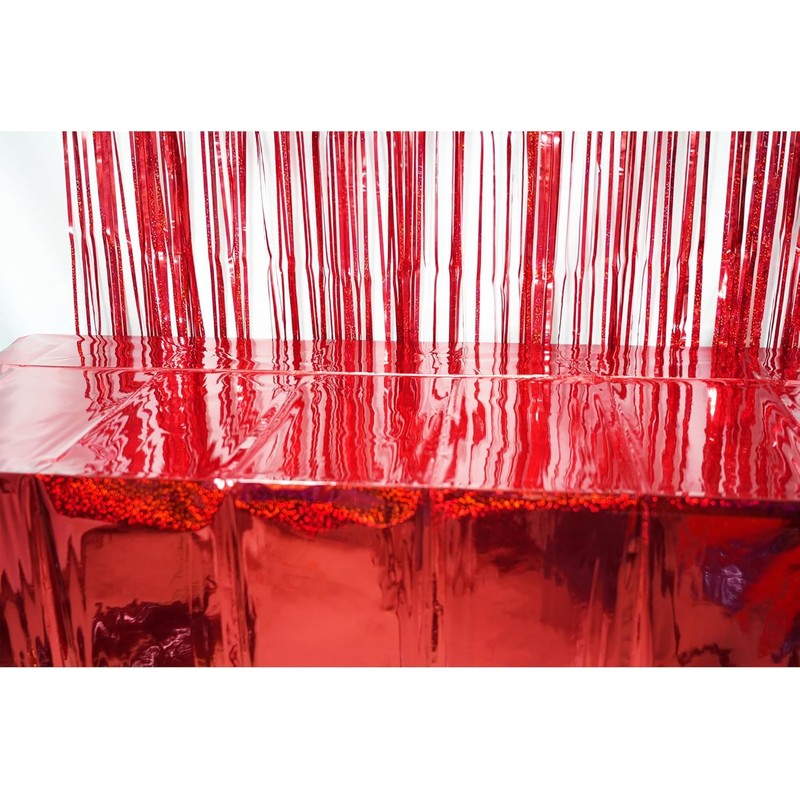- This shiny red table cloth is for birthday parties, celebrations, and other festive occasions. Its rectangle design makes it a great fit for most tables, and its disposable nature ensures hassle-free cleanup.