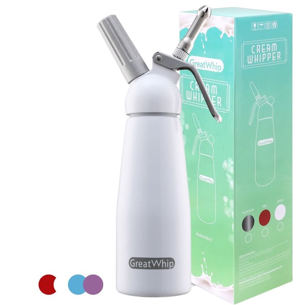 - PROFESSIONAL GRADE WHIP CREAM DISPENSER - Use the GreatWhip cream dispenser to finish cooking gorgeous dishes! The full-feel aluminum bottle body, is tough and sturdy, You can easily make fluffy and fresh Homemade whipped Cream with just a shake, GreatWhip whipped cream canister is a kitchen tool worthy of lifelong use.