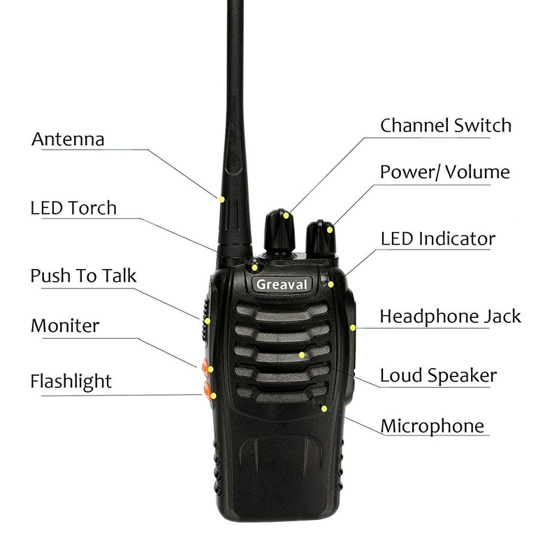 Greaval Walkie Talkies Rechargeable Long Range Two-Way Radio with Earpiece,16-Channel UHF Handheld Walky Talky with Flashlight Li-ion Battery and Charger(2 Pack)
