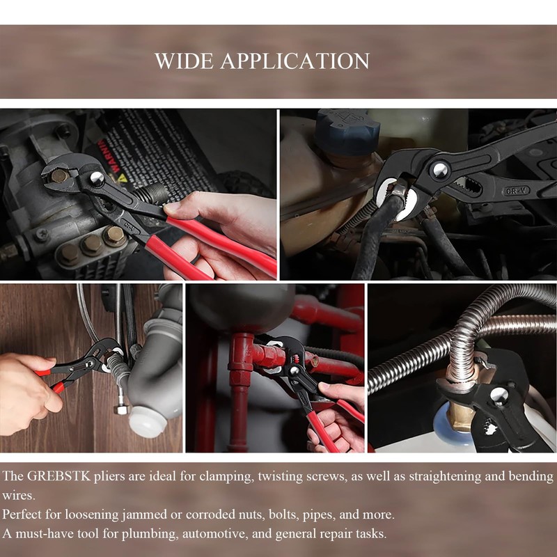 - This GREBSTK water pump pliers are great for plumbing tasks, automotive work, and general maintenance. They can be used to tighten or loosen nuts, bolts, and fittings, making them a versatile addition to any toolbox.