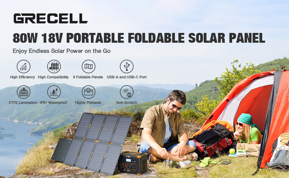 GRECELL 80W Foldable Solar Panel kit USB Outdoor CellPhone Tablets Solar Charger