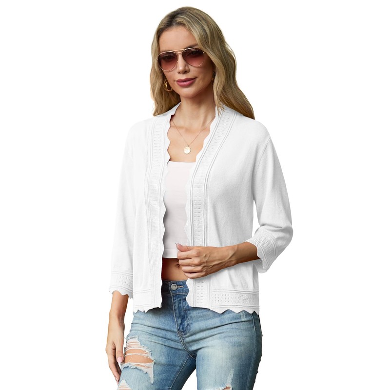 - DESIGN & STYLE: Women's cardigan with 3/4 sleeve, open front design, wave ribbed cuffs and hem, cute and elegant