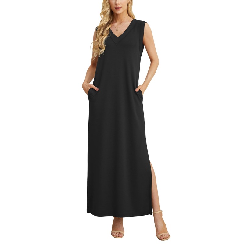 - [Focal Point] Maxi dress: stylish, fashionable, v-neck, sleeveless, ankle length. Complements any shoe whether sneakers or heels.