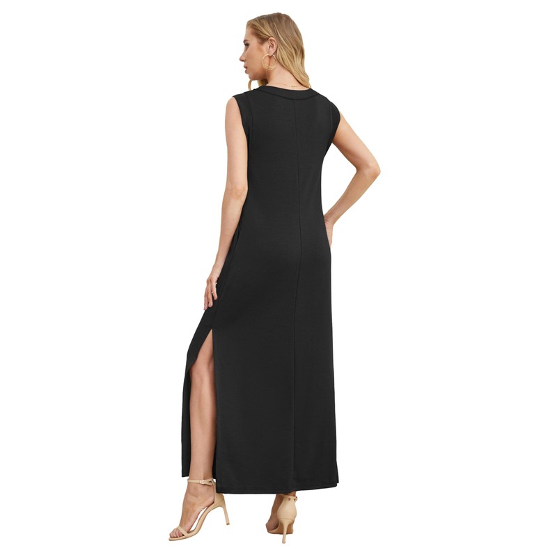- [Trendy Design]This unique maxi dress has a triangle patch at the underarm for modesty without sleeves. The side slit hem accentuates your curves, making you look charming. Convenient side pockets for hands-free movement.