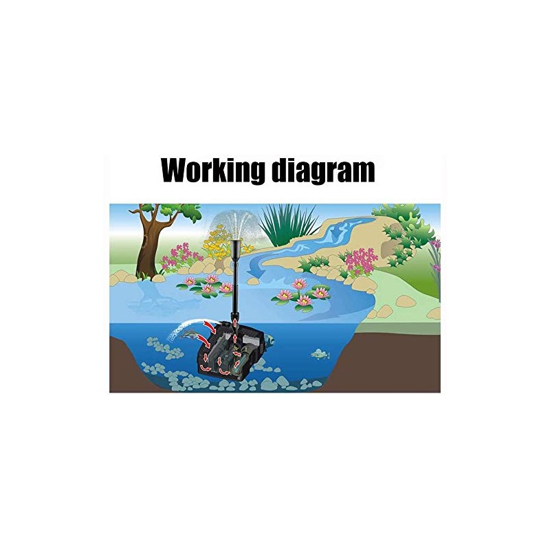 • This pond filter water pump built-in filter sponge, biochemical basket, 9w lamp and water pumps. Adopt reasonable water channel, suitable for both indoor, outside pond garden, aquatic breeding, clean water and water fountains with three different fountain nozzles to make your pond more beautiful.