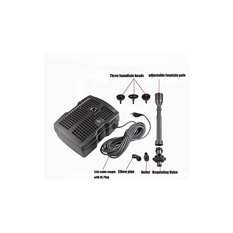 Grech 660 GPH Submersible Fountain Pond Filter Pump with Fountain Kits