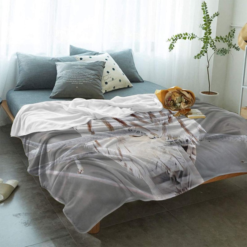 Greeeen Plush Fleece Throw Blanket | Fuzzy, Soft, Warm, Cozy, Reversible Blanket for Bed Couch Sofa Chair Travel- 49" x 59" Winter Owl