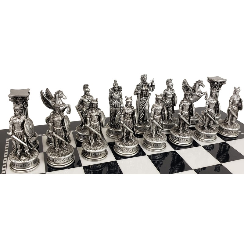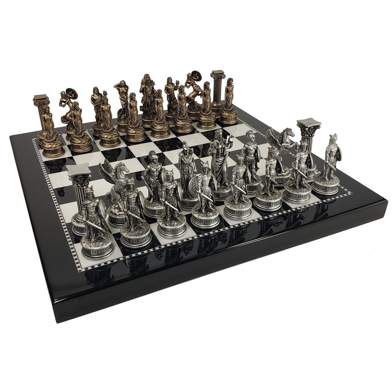 Greek Mythology Olympus Gods Zeus vs Poseidon Pewter and Bronze Color Chess Set with 15 inch Black and White Gloss Board