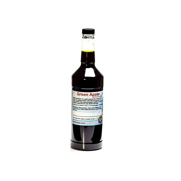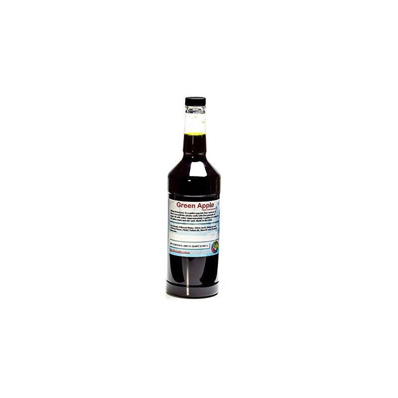 Green Apple Shaved Ice and Snow Cone Unsweetened Flavor Concentrate Quart 32 Fl Oz Size (must add sugar and water)