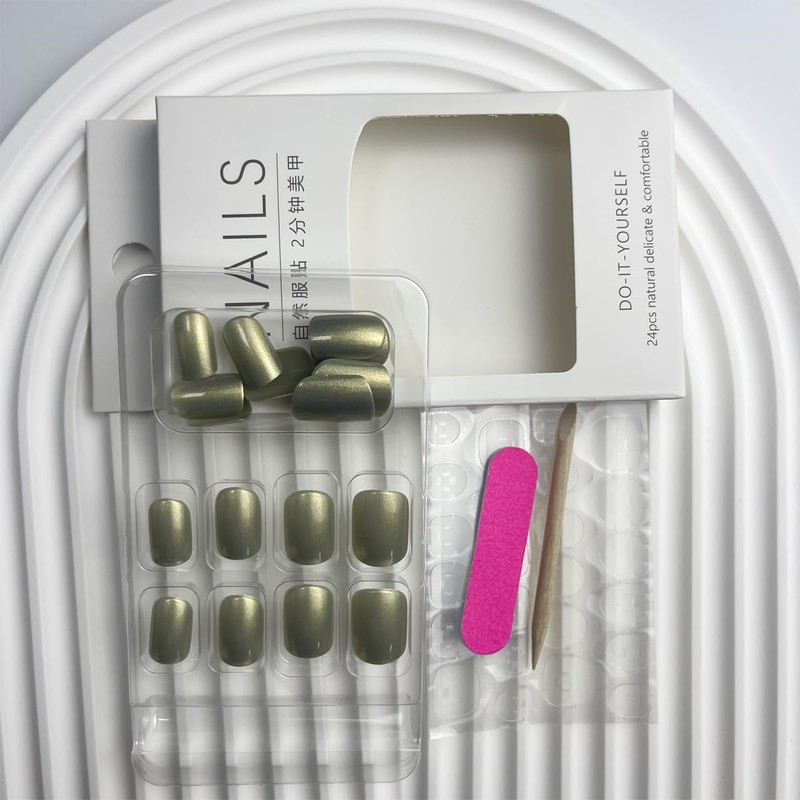 - What You Get: This set includes 24 short glue on nails in 12 sizes, 24 adhesive tabs, a nail file, and a wooden stick. With various sizes and the ability to trim and shape to your preference, you'll find the perfect fit for any nail. Ideal for a custom look, these short stick on nails also make a fantastic gift for women and girls. Enjoy versatility and convenience with every set