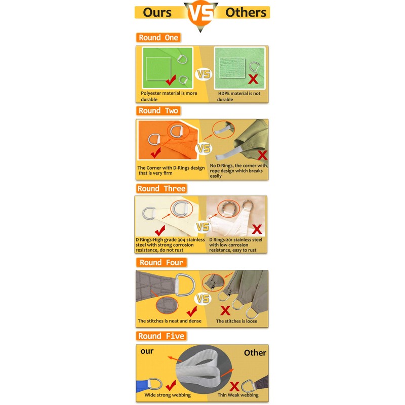 Note:The shade sail may not be made by a whole piece of fabric. Hope you can understand.
