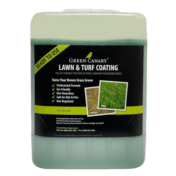 Green Canary Pre-Mixed Grass Colorant - 5 Gallons, Environmentally Safe, Natural Looking Turf, Green Grass Paint, Ready to Apply, Made in USA