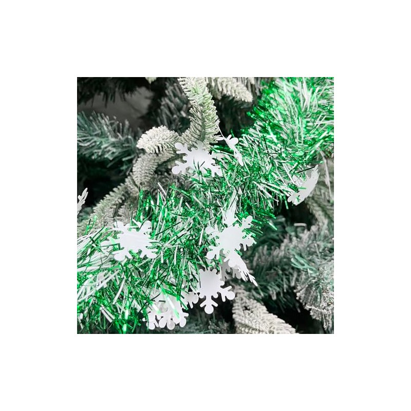 Green Christmas Snowflake Tinsel Garland, 10m / 32.8ft Christmas Tree Metallic Tinsel Xmas Tinsel Shiny Garland Thick Hanging Decorations for Christmas Party Home Decorations (Green)