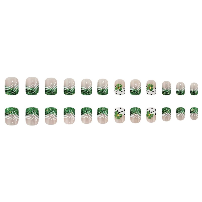 - Easy to Use:St Patrick green shamrock Fake nails with glue sticker can get your favorite manicure in just 5 minutes without waiting at the nail salon. Some simple steps allow you to get the same impressive professional effect at home