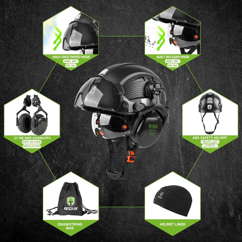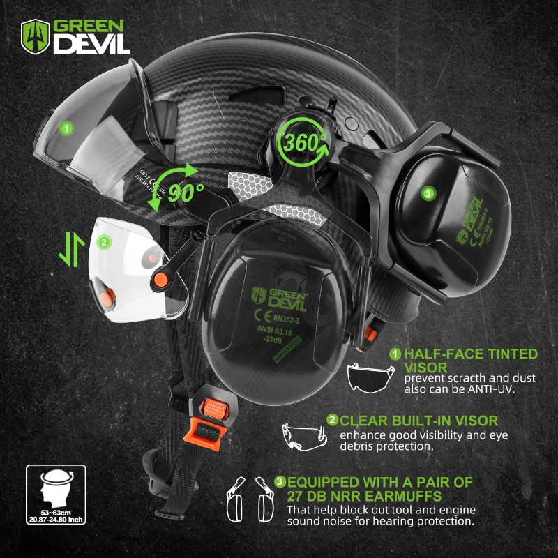 【Thoughtful Quality Service】:GREEN DEVIL hard hat with dual Layers visor and ear protection combination is a good partner in your work. It is also a unique gift for family and friends.If you have any questions or suggestions about our safety helmet, please feel free to contact us. We are here 24/7 to chat and and give you the most satisfactory results and help.