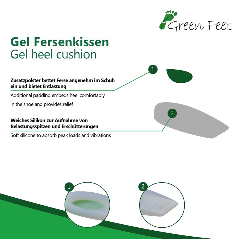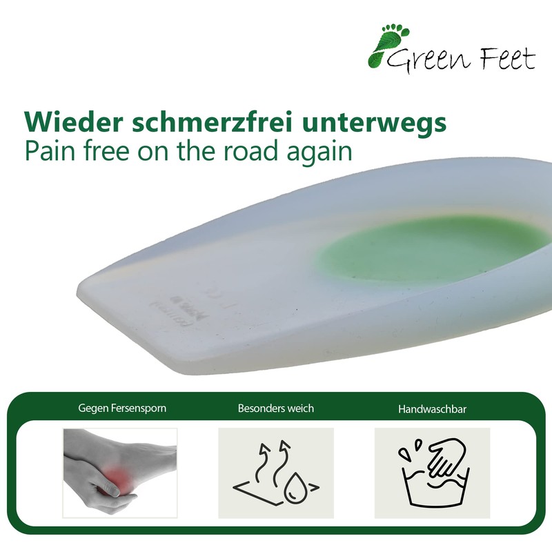 Green Feet Comfort Gel Heel Cushion, Anatomical Aid for Heel Problems, Excellent for Heel Spurs, Back and Achilles Tendon Complaints (L = G 41-43 EU)