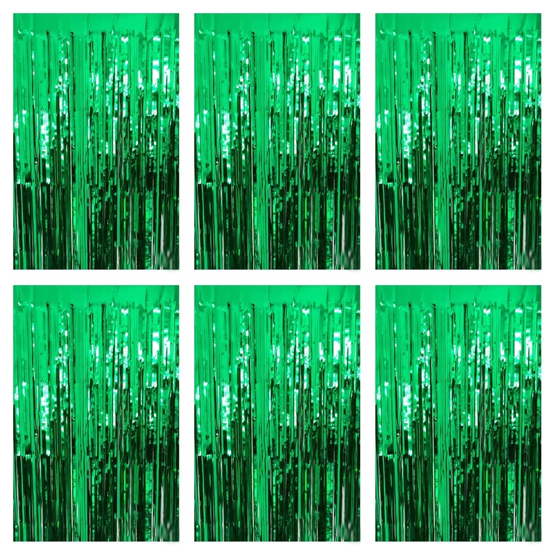 Green Foil Fringe Curtain 3.3×8.3FT 6 Packs, Metallic Tinsel Curtains Party Streamers for Birthday Graduation Baby Shower Decoration (6pcs,3.3FT×8.3FT, Green)