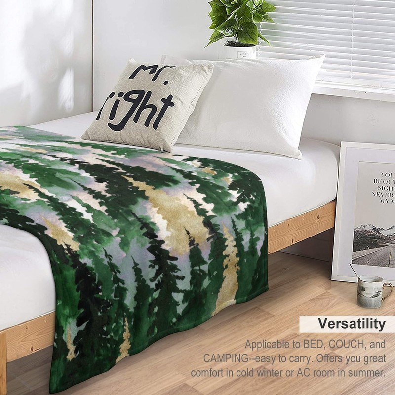 Green Forest Throw Blanket, Soft Cozy Flannel Fleece Pine Trees Fuzzy Blanket for Kids, Warm Nature Plush Throw Blankets for Boys Girls Birthday Gift Bed Sofa Traveling 30x40 Inch