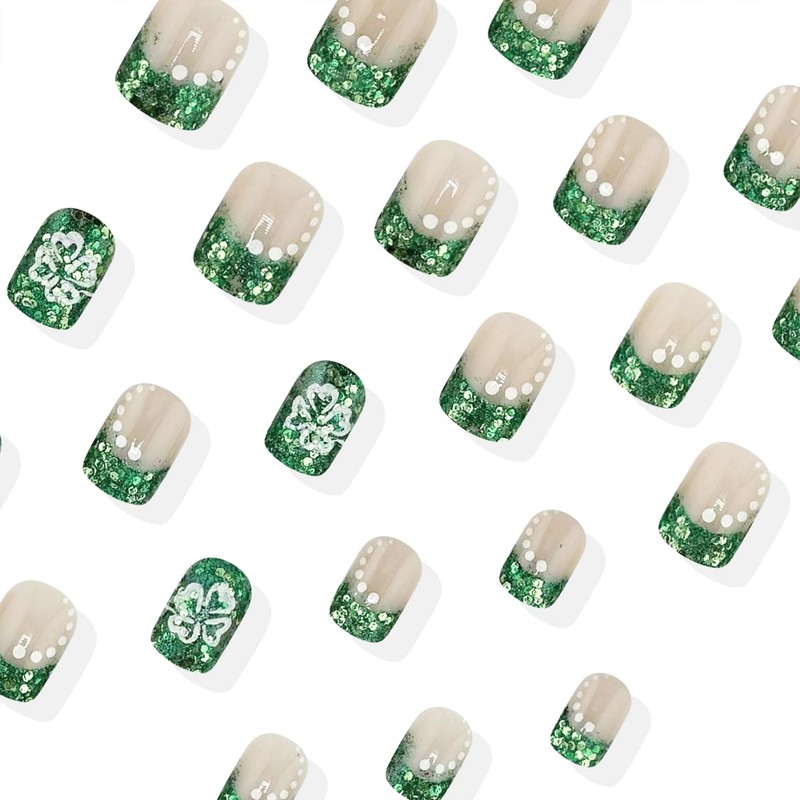 - Has Many Uses:St. Patrick's Day french tip design false nails , short coffin shape. Perfect for nails salon, DIY home nails art,used on wedding ,prom party ,dating.It is perfect gift for girlfriends, wives, women and girls
