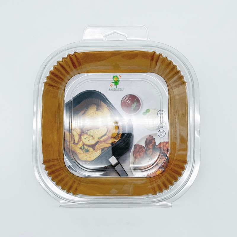 Green Harvest 8 inch Square Air Fryer Liners, 50-pack, Non-stick Parchment Paper Liners, Oil Resistant Air Fryer, Disposable, Round Liners for AirFryers, Oven, Baking, Roasting, Microwave - 50 Sheets