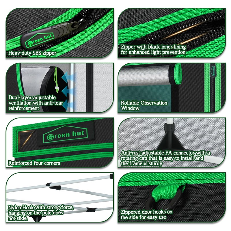 - LIGHT PROOF The large heavy duty Zippers & 1.5" ribbon protect the tent from light leaking and ensure durability and long-lasting use. Let you control the climate and lighting so you can grow any plant in any place safely and easily