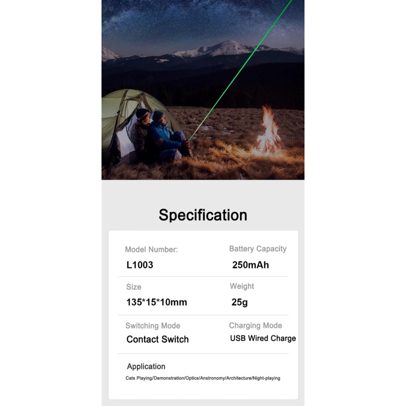 - Features: Laser pointer, USB Rechargeable, SUPER BRIGHT AND LONG LASTING