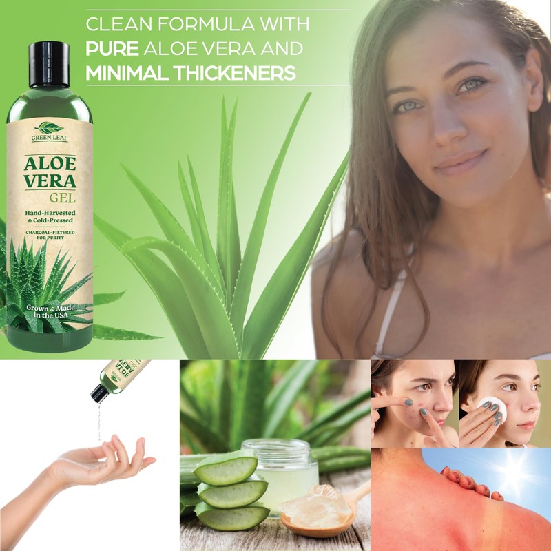 - Aloe Vera: Pure aloe vera gel, farm harvested in Texas and hand picked for you. Clean and ethically grown, no thickeners nor chemicals added. Skin-healthy nutrients added to boost quality and efficiency. Created in the USA.