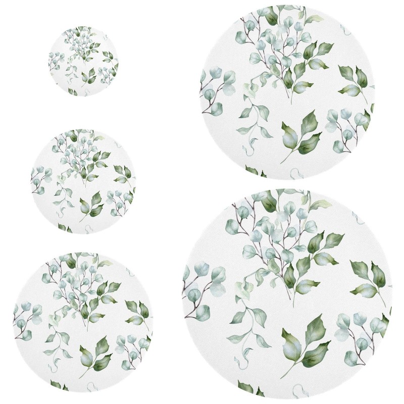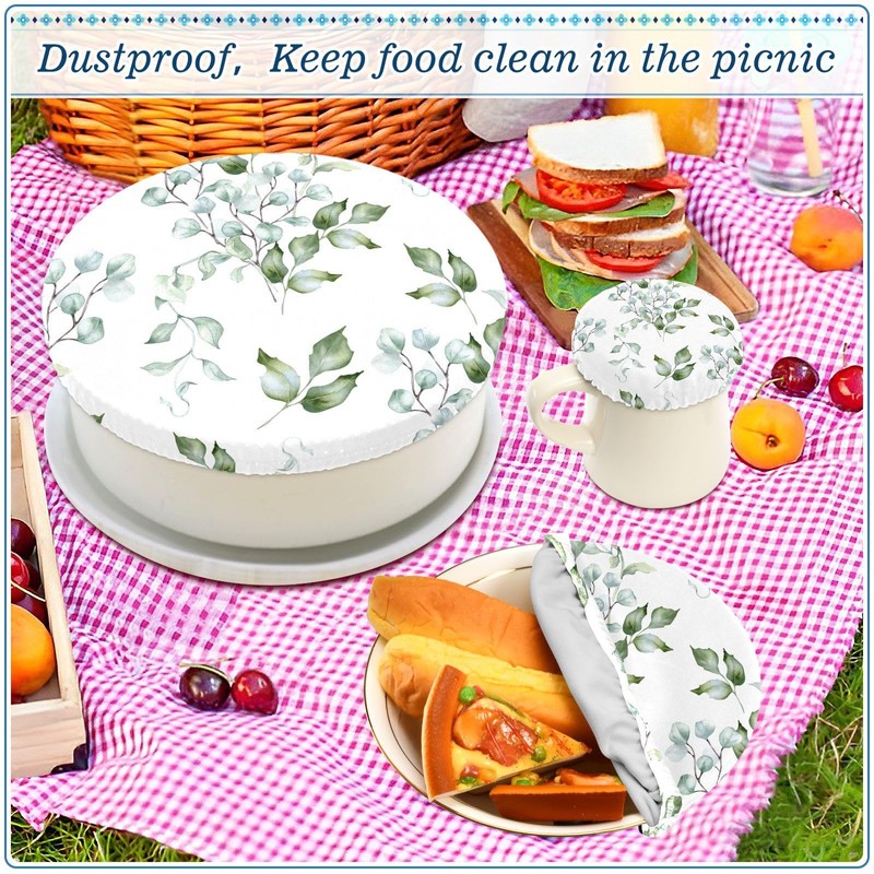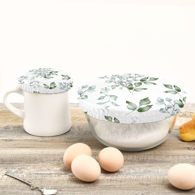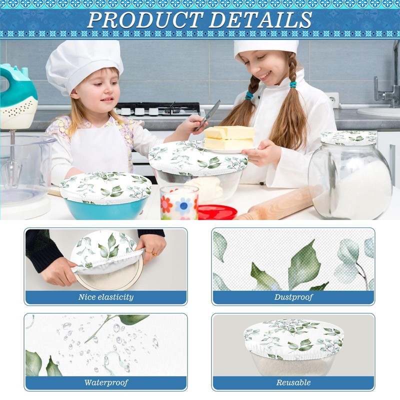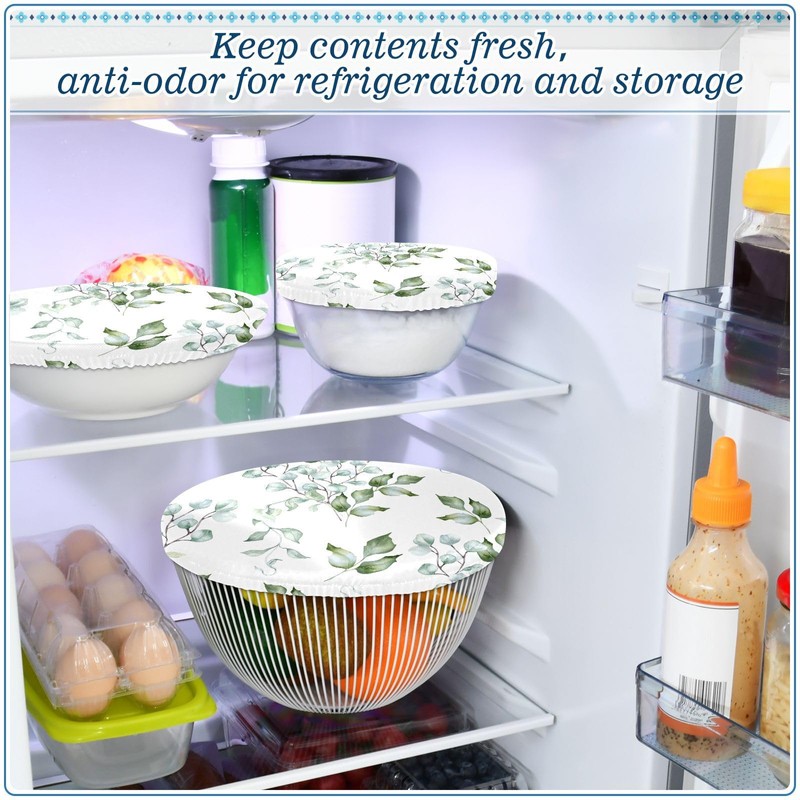 Green Leaves and Eucalyptus Bowl Covers Reusable in 5 Size Stretch Cloth Fabric Bowl Covers Elastic Food Storage Covers Cotton Bread Bowl Covers Reusable Lids for Food Fruits Leftover