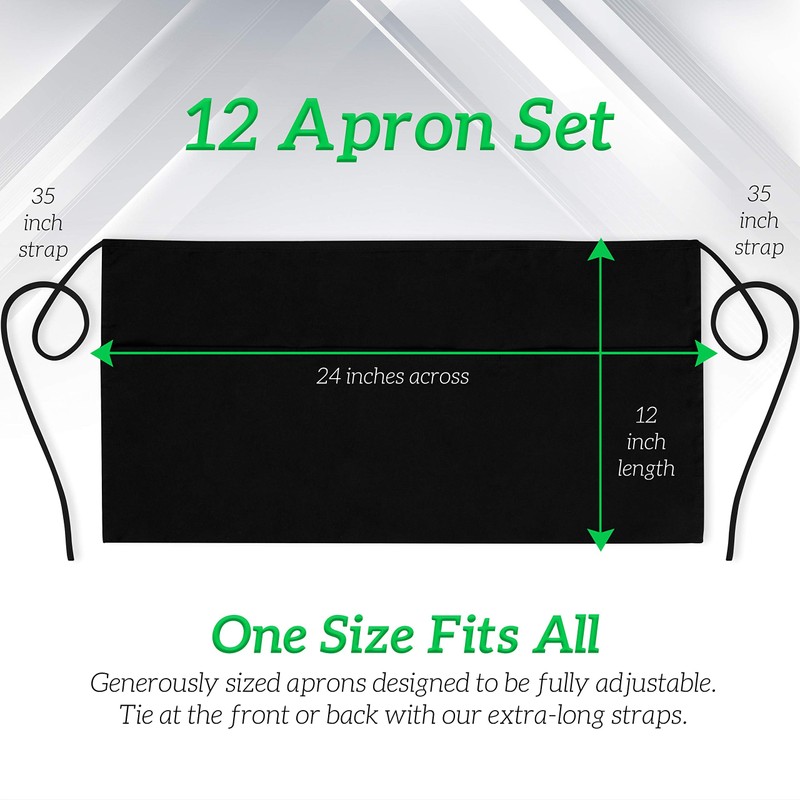 GREEN LIFESTYLE GREEN LIFESTYLE Server Aprons with 3 Pockets - Waist Apron, Waitress Apron for Women and Man, Water Resistant with Long Waist Strap Reinforced Seams, Half Apron (12 Pack - Black)