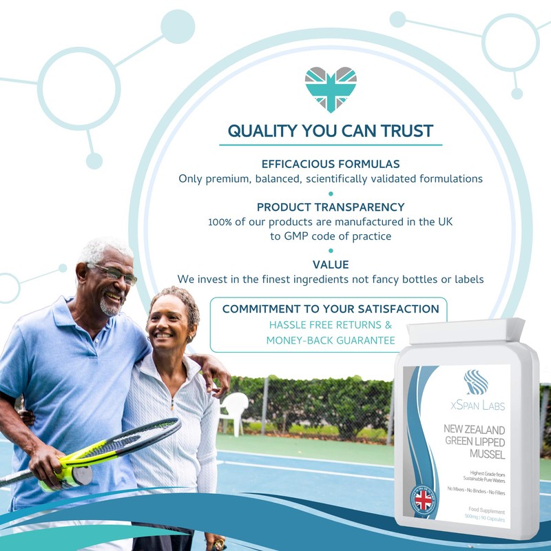 - ✔ PURE – xSpan Labs Green Lipped Mussel capsules are manufactured using only the finest quality raw materials in their best grade and purest form so that we can guarantee you receive a consistently high-quality product. Utilising the latest research to bring you premium, balanced, scientifically validated formulations free from: ✘lactose, ✘gluten, ✘wheat, ✘soya, ✘yeast, ✘dairy, ✘GMOs. No mixers – No binders – No artificial fillers