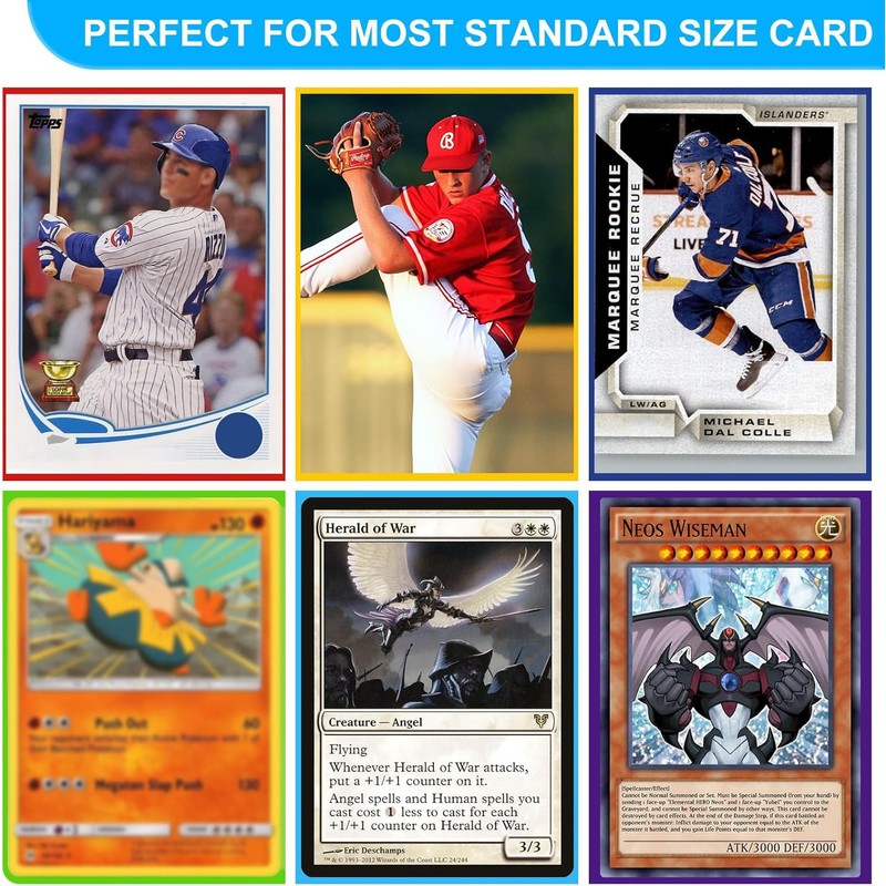 - Proper Size: Our standard card holder size is 66*91mm, your card wont fall out easily, which is convenient and easy to collect, sort and protect all kinds of card that you like, such as MTG, baseball card, football card, sports cards, mini kpop photocard, magic cards.