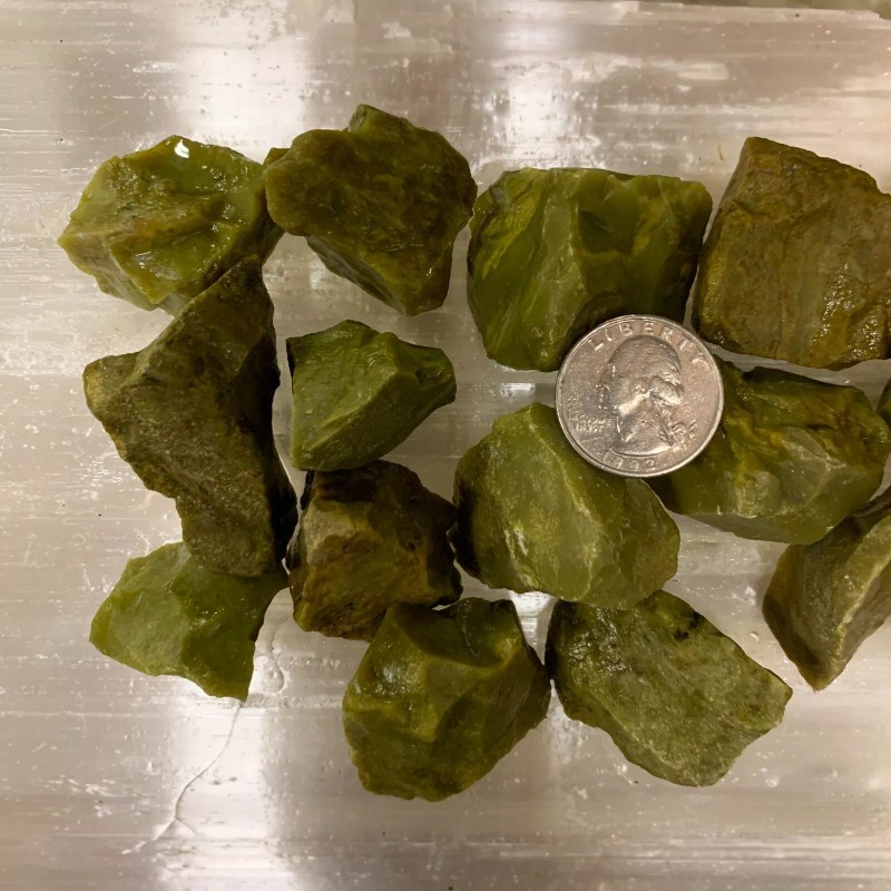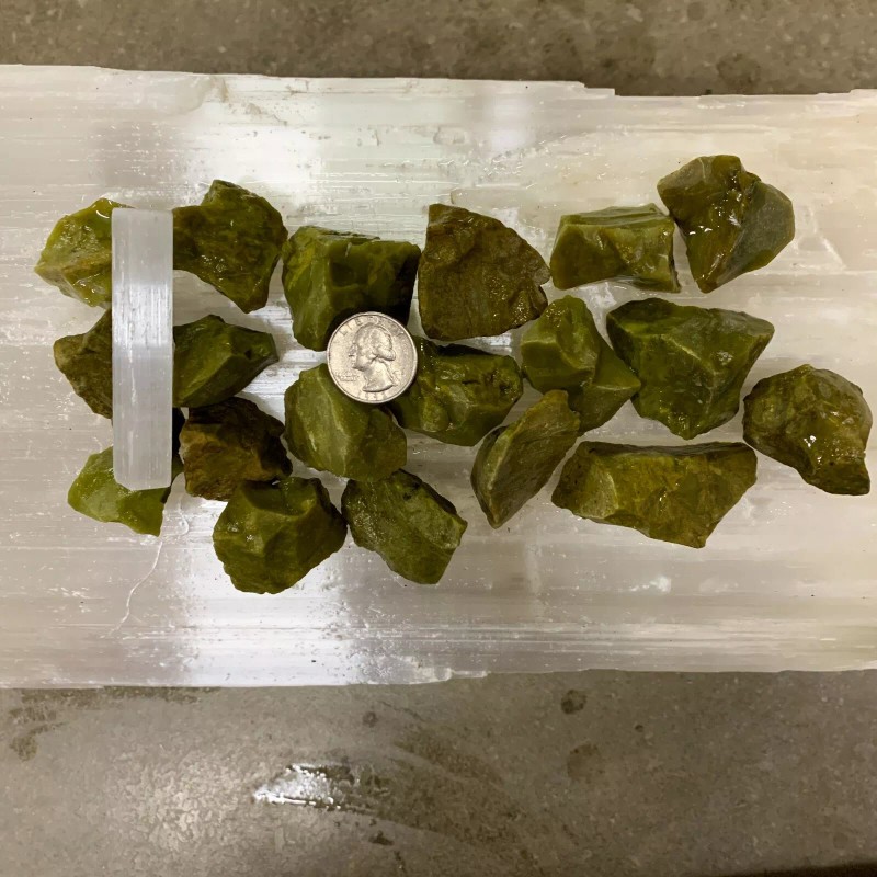 GREEN OPAL ROUGH, CHARGED 2000 CARAT LOT + A FREE SELENITE CHARGING STICK