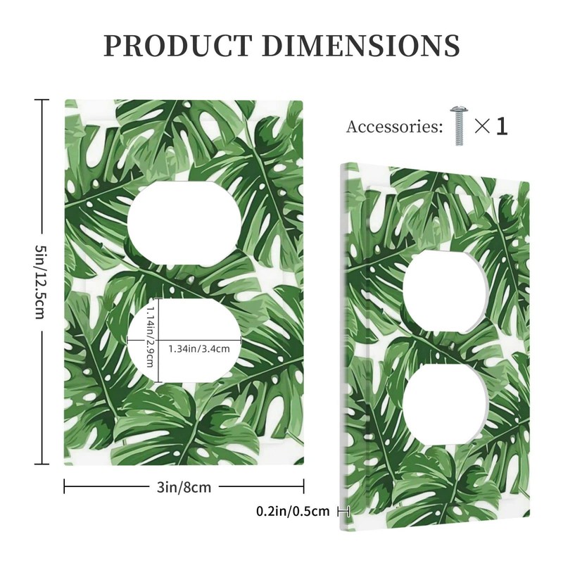 Green Palm Leaves Outlet Covers Wall Plate Decorative 1 Gang Duplex Light Switch Electrical Receptacle Switchplate Faceplate for Bathroom Bedroom Living Room Home Decor