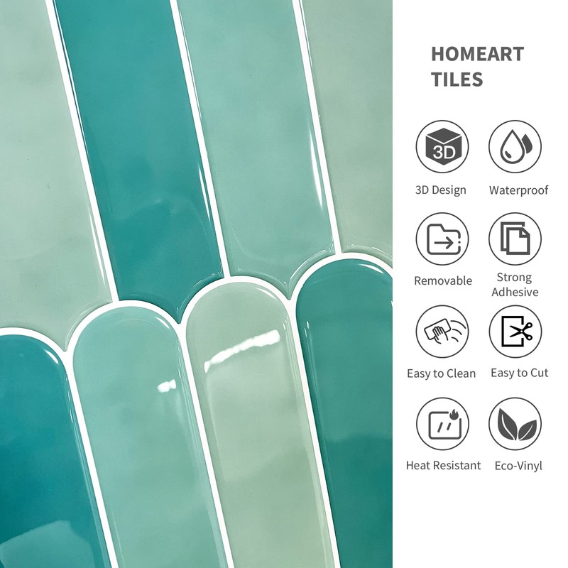 - PREMIUM PEEL AND STICK TILES - Come in box of 10 sheets green peel and stick tile, size of each tile: 10" x 10". 10 sheets cover around 6.7 sq.ft. Self-adhesive and steady sticky,suitable for smooth and clean surfaces.