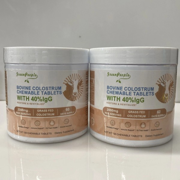 Green People 2 X Bovine Colostrum Tablets Chewable 40% IgG Supplement 240ct total, EXP 04/26