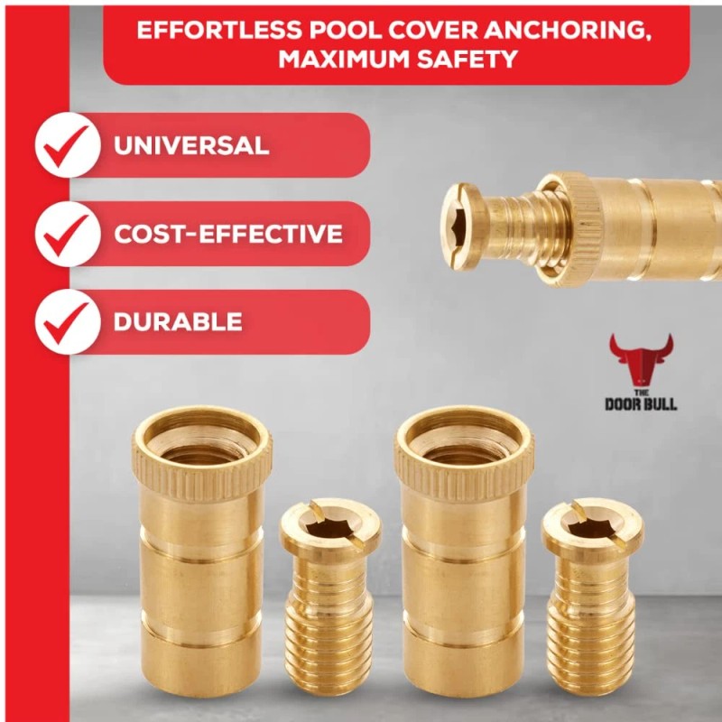 - EASY TO USE: Our pool safety cover threaded brass insert screw bolts are absolutely easy to use. You just need to remove the old anchor screw. Then reinsert the new head screw insert. It's finished.