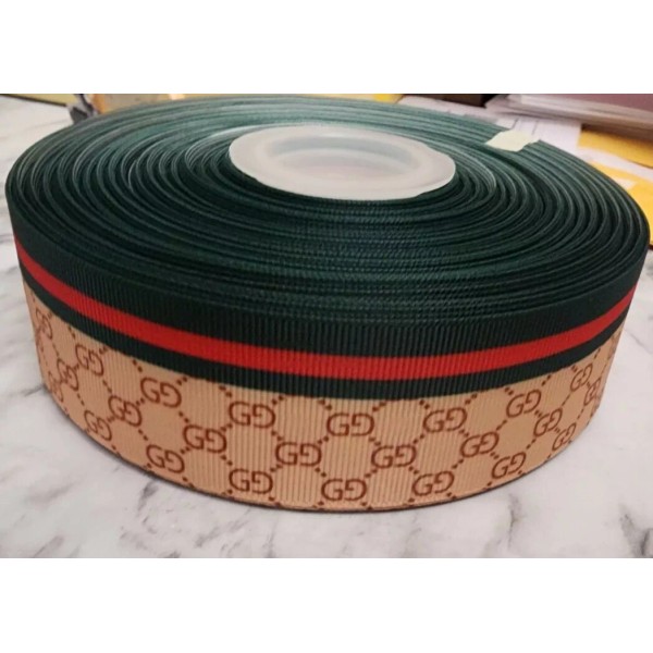 Green Red GG Grosgrain Ribbon 1.5 Inch Wide 2 Yards & Bee Applique Patch