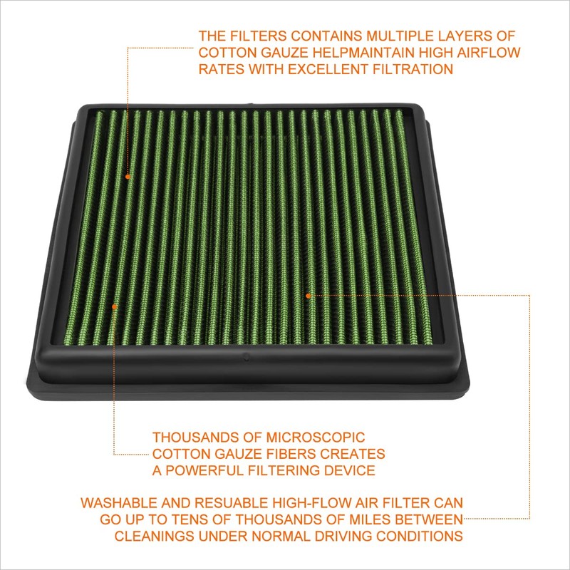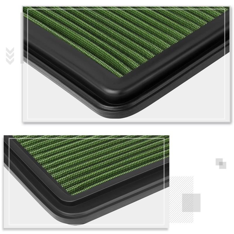 Green Reusable&Washable High Flow Drop-in Air Filter Compatible with 06-15 Mitsubishi L200/Triton