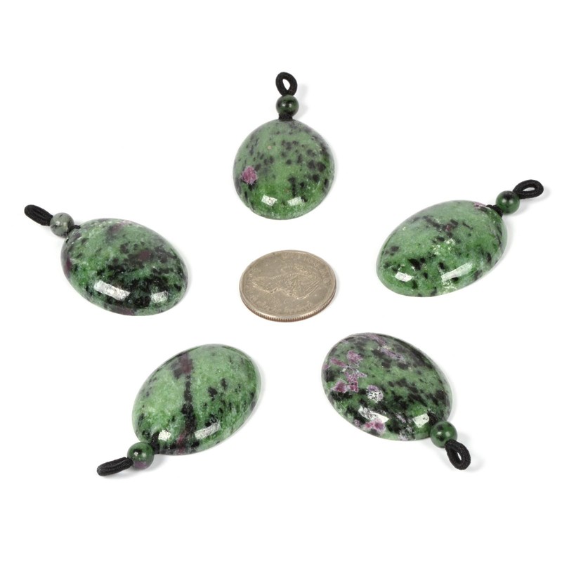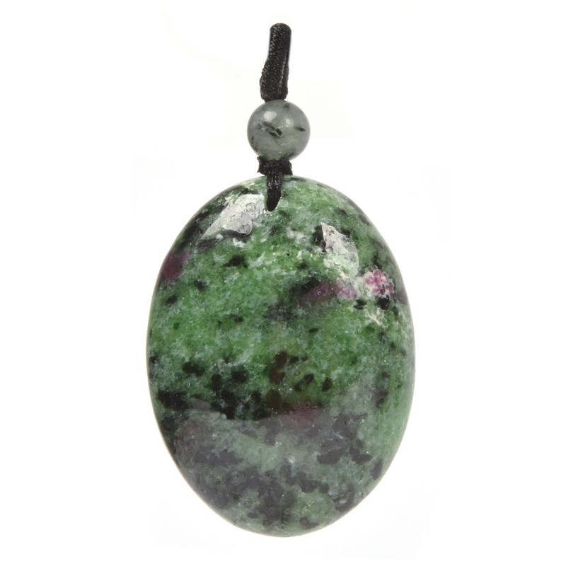 Green Ruby Zoisite Natural Crystal Gemstone Healing Quartz 40mm Flatback Oval Braided Cord Necklace 22"