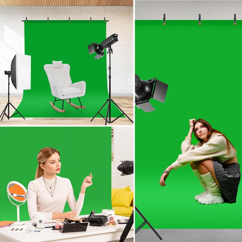 - 🖼️【High-Quality GreenScreen Backdrop】The 5 x 6.5 feet Portable Chromakey Green Screen is made from pure cotton fabric, providing a seamless and non-reflective surface for superior chroma key compositing. Perfect for streaming, video recording, gaming, and YouTube content, this green screen ensures clean and accurate results. If creases appear from folding during shipping, simply iron or hang the backdrop on the stand to restore its smooth, wrinkle-free appearance.