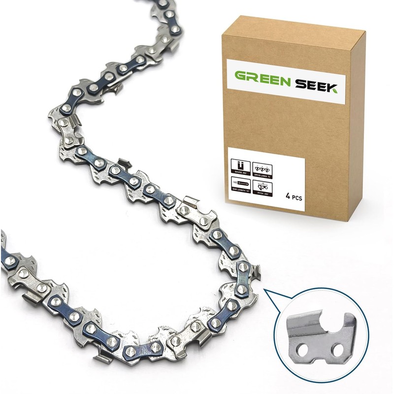 Green Seek Chainsaw Chain, 8-inch, 043, 1/4-inch Pitch, 48 Drive Links, 4-Pcs