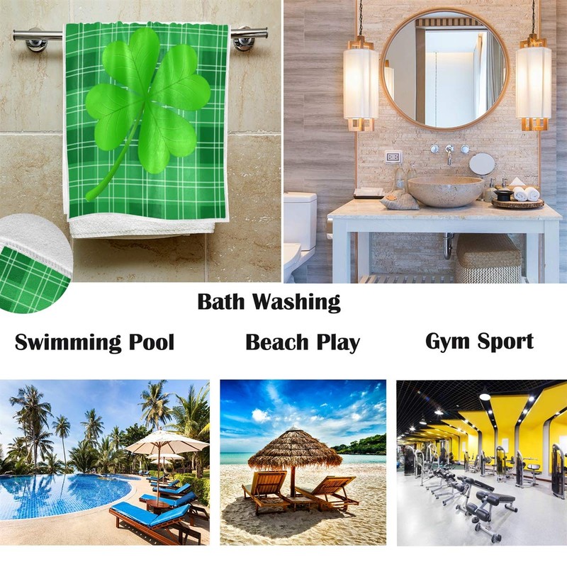 Green Shamrock Clover Lucky Leaf Hand Towels 16x30 in Ireland Irish Plaid Checked Bathroom Towel Ultra Soft Absorbent Small Bath Spring Towel Kitchen Dish Guest Towel St Patrick's Day Decorations