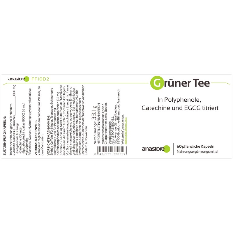 Green Tea * 400 mg / 60 Capsules * Titrated to 50% in Polyphenols