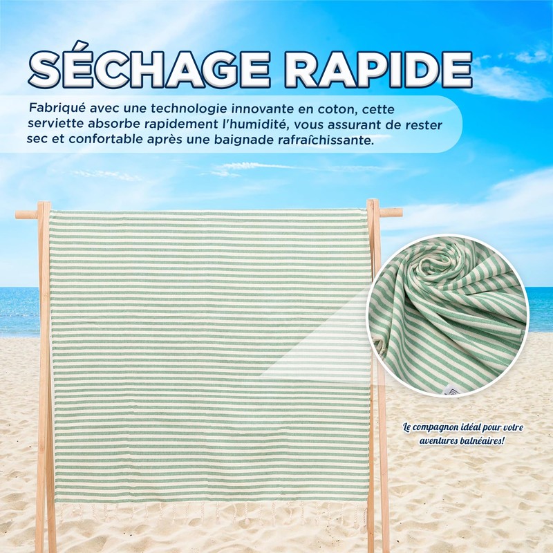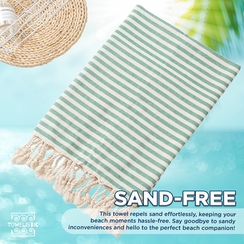 Green Turkish Beach Towel Oversize 100cm x 180cm with Carry Bag