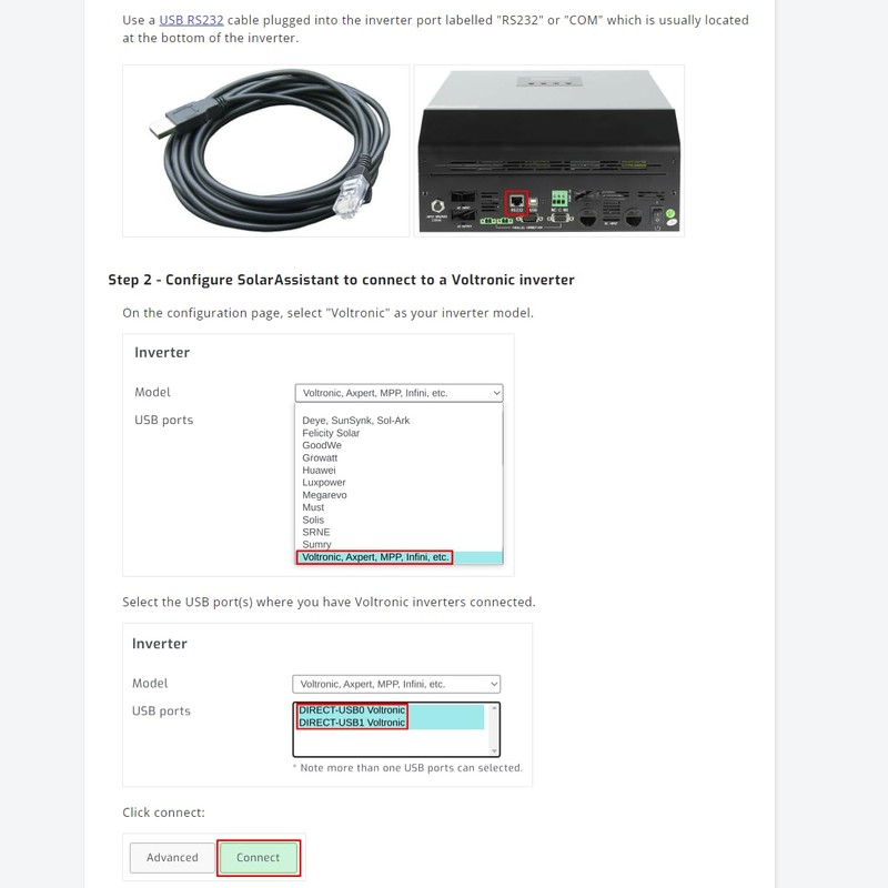 RS232 is more resilient against electronic signal disturbance (noise) compared to USB. When measuring noise, the Voltronic inverter RS232 port has a lower amount compared to the micro USB port.