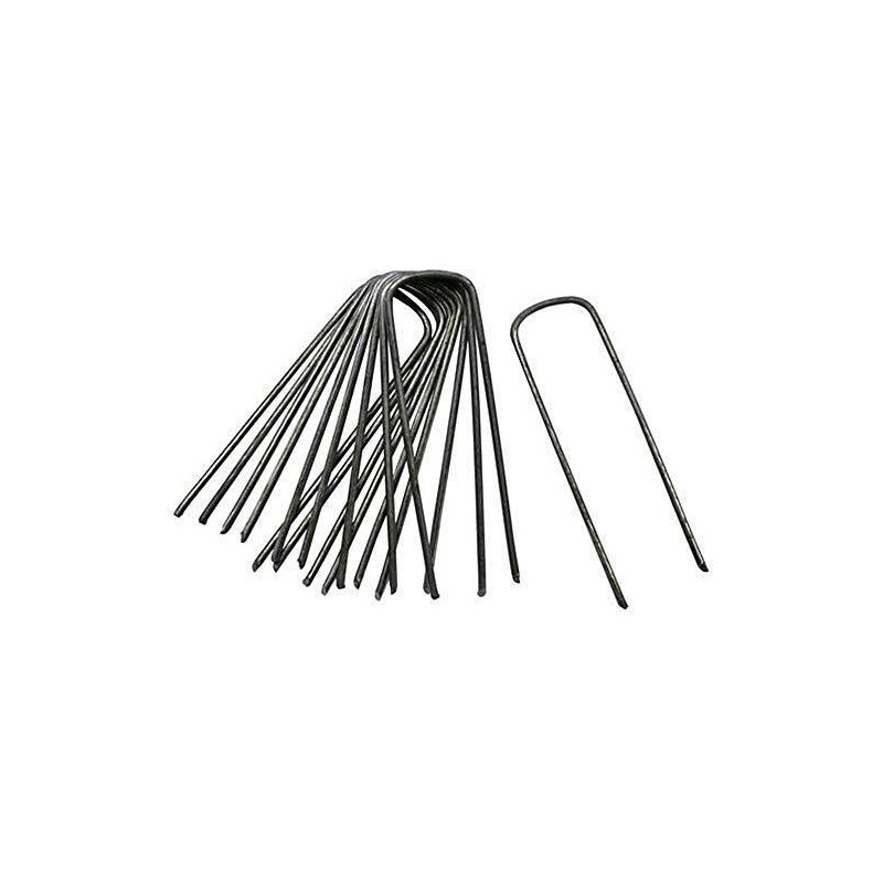 Steel U-shaped stakes are included with each size. Each stake is 6 inches long.
