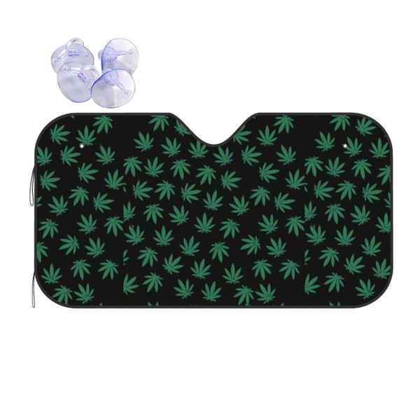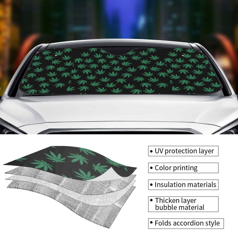 Green Weed Leaves Windshield Car Sunshade Foldable Uv Ray Reflector Front Window Sun Shade Visor Shield Cover Car Accessories Medium Fit Trucks SUV Car