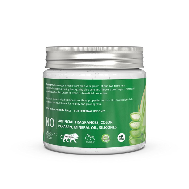 - Aloe Vera Skin Gel made from Pure, Natural, Transparent extract of aloe inner gel extracted from mature leaves.