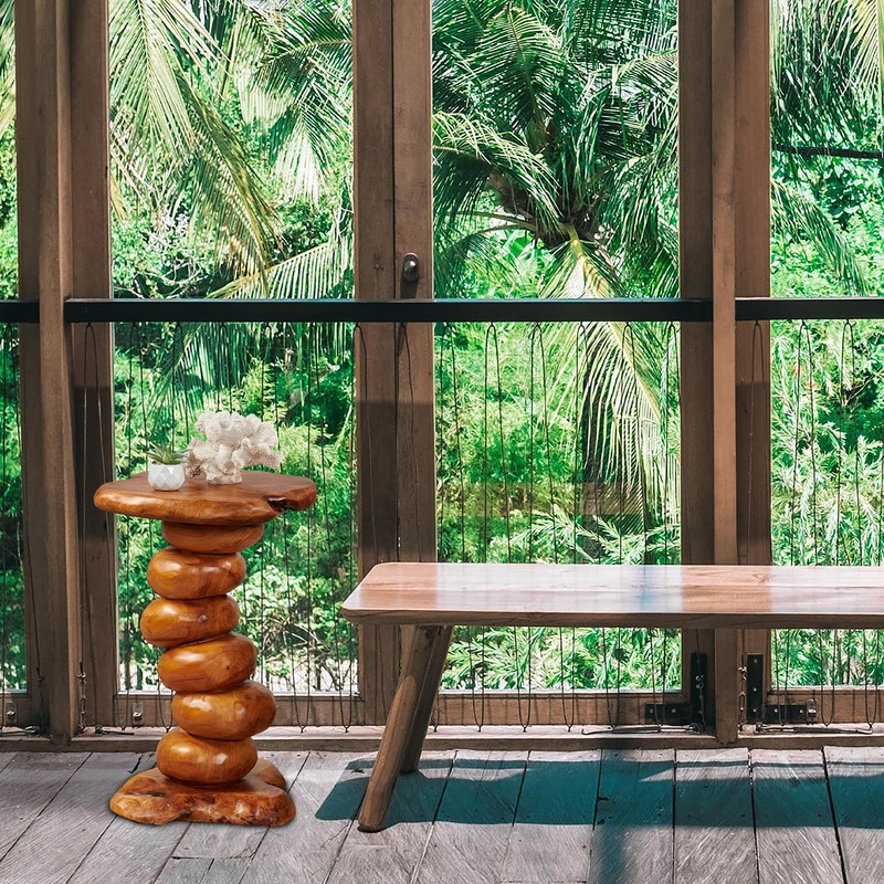 Not for sitting or stepping.Each piece uniquely preserves its origin look with its unique shape, grain, holes, cracks and color. Its approximate size is 13.8x13.8x23.6"; Finished measurements may vary 1-2 inches. May observe natural holes with burnt color that were carefully handled and treated.